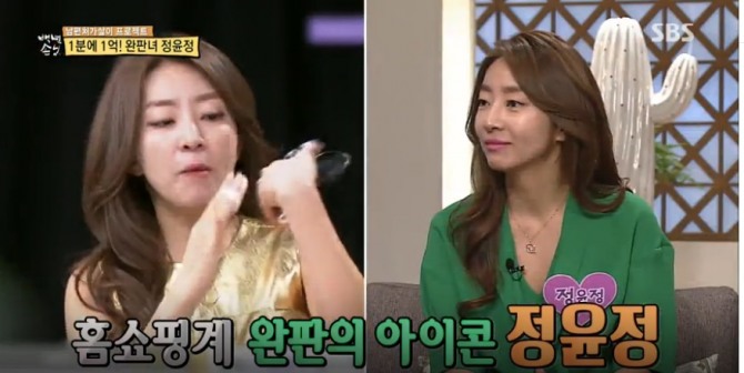 김원희는 정윤정이 '180분 동안 110억원의 매출'을 올린 경력을 소개해 김환의 입을 떡 벌어지게 했다. 게다가 1분에 1억원의 매출을 올린 적도 있다고 덧붙였다.