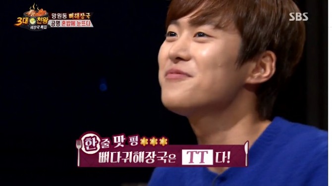 이미지 확대보기10일 방송된 SBS '토요일이 좋다-백종원의 3대천왕'에서는 배우 민진웅과 공명이 게스트로 출연한 가운데 해장국 특집으로 빨간 해장국과 맑은 국물을 자랑하는 해장국 대결이 펼쳐졌다.
