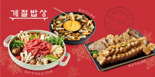 우선 계절밥상은 부드러운 돼지 수육에 마늘 소스를 곁들여 먹는 '황금마늘보쌈', 얼큰한 육수에 소고기와 낙지, 채소 등을 푸짐하게 넣어 끓인 '얼큰낙지소고기전골', 떡과 고구마를 치즈에 찍어 먹는 '황금치즈퐁듀' 등 신메뉴 8종을 선보인다.