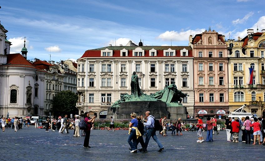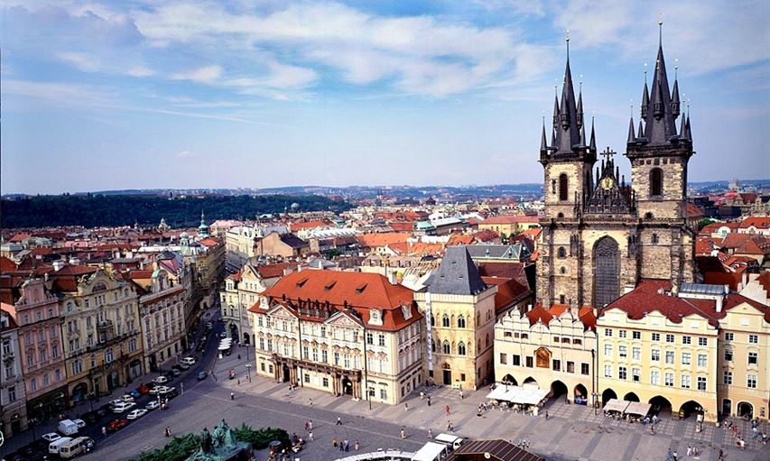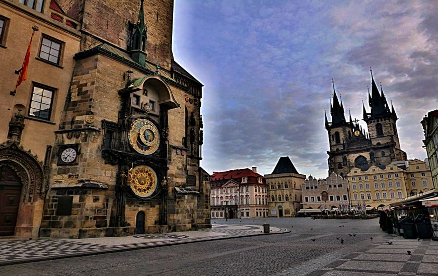 프라하의 구시가지의 중심에는 구시청사와 틴 성당이 있다. 중세의 아름다운 건물 양식들이 광장을 둘러싸고 있어, 마치 시간여행을 한 것 같은 느낌이 든다. 지금은 대표적 체코 관광지로 관광객들이 많이 방문하지만 제2차 세계대전 때 파손된 건물은 시계 탑 일부분만 남아있다. 지금은 복구가 되어 시민들의 결혼식장으로 이용되기도 한다.