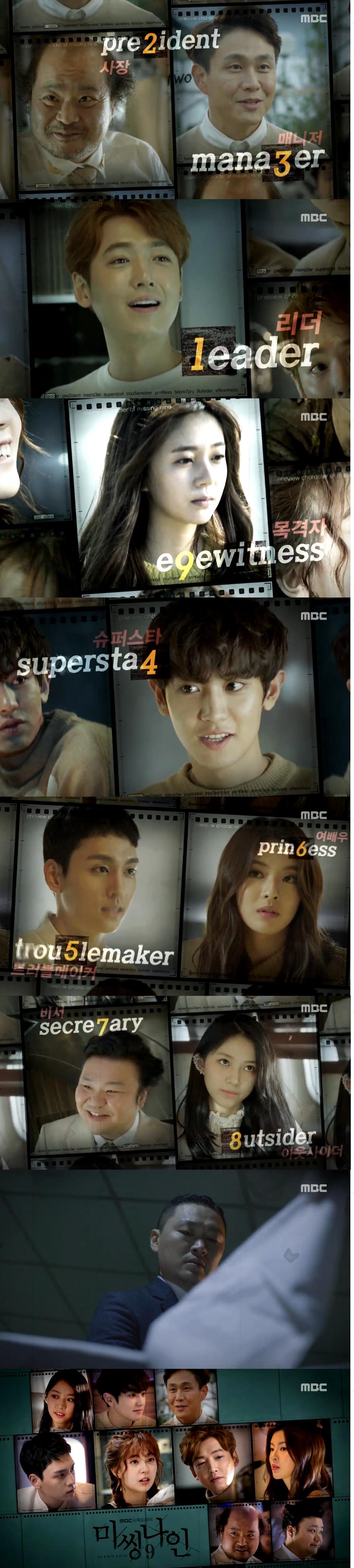 이미지 확대보기MBC 새 수목드라마 '미씽 나인'(연출 최병길, 극본 손황원) 제작사인 SM C&C는 19일 주연 정경호, 백진희, 찬열, 이선빈 등이 등장하는 티저 영상을 최초 공개했다.