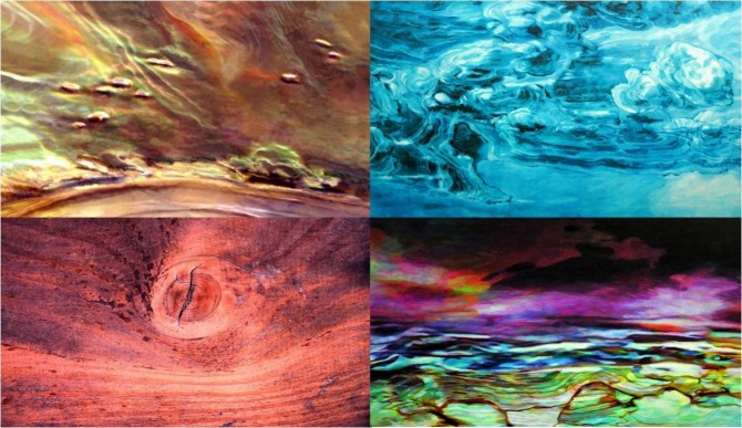 특히 쉽게 지나쳐 버릴 수 있는 전복 껍질도 작가의 상상력을 자극했다. 전복 껍질이 띠고 있는 물결 무늬와 강한 진주 광택은 작가의 손길에 의해 캔버스 위에서 새로운 세계로 재탄생했다. 그저 알맹이가 없는 껍데기에 지나지 않았던 사물이 '하늘 연못'이 되었고 '파라다이스'와 '마법의 산'이 되었으며 '바다의 유혹'과 '끝없는 기다림'을 이야기했다.