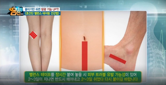 ** 이때 밸랜스 테이프를 장시간 붙여 놓을 시 피부 트러블 유발 가능성이 있어 2~3일 지나면 반드시 떼어내고 2~3일 쉬었다 다시 붙여야 한다.