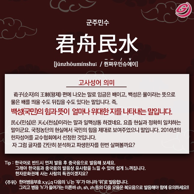 [서재환의 말로 쓰는 톡톡 중국어(4)] 사자성어 君舟民水(군주민수)