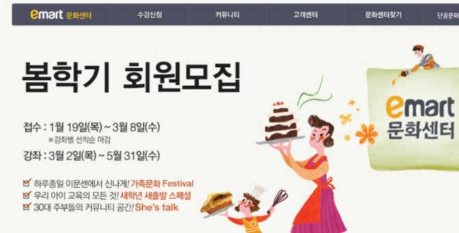 이마트 문화센터도 이날부터 3월 8일까지 봄학기 회원을 모집한다.
