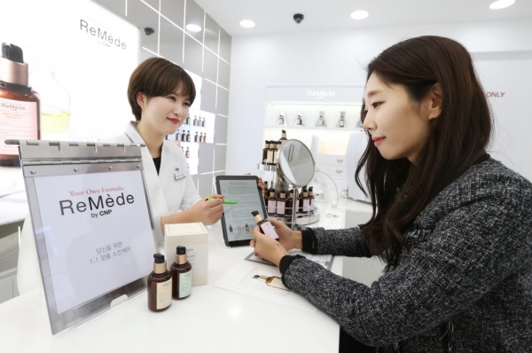 르메디 매장을 방문하면 피부 전문가와의 개별 피부 측정 인터뷰를 통해 라이프 스타일 및 피부고민을 확인하고, 피부측정기기로 피부 상태를 정밀하고 과학적으로 분석한다. 이러한 피부 측정 인터뷰와 피부 분석 결과를 기반으로 1:1 레시피를 추천하고, 최종 레시피로 위생적이고 안전한 혼합실에서 혼합, 고유 제품 번호와 이름이 라벨링된 ‘나만의 세럼Ex’가 완성된다.
