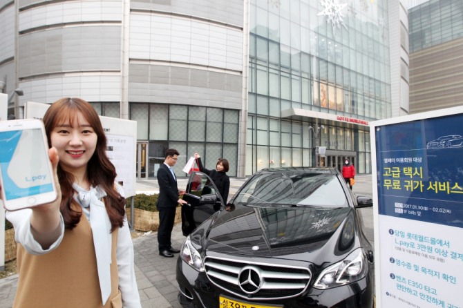 이미지 확대보기당일 롯데월드몰에서 ‘엘페이’로 3만원이상 결제고객 중 송파, 강동, 강남, 성동, 하남 등 롯데월드몰에서 반경 10Km내 거주자에 한해 ‘벤츠 E350’을 타고 귀가할 수 있는 기회를 부여한다.