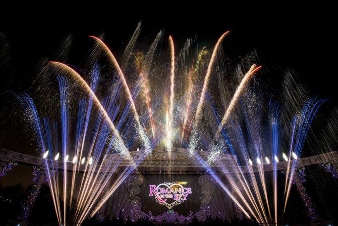 '로맨스 인더 스카이'는 첫 만남부터 첫 키스, 프로포즈, 가족의 탄생까지 사랑을 주제로 한 4가지 테마 음악에 맞춰 화려한 불꽃놀이, 조명, 특수효과, 영상 등이 어우러지는 에버랜드의 겨울 대표 공연이다.