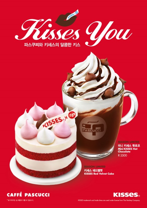 이미지 확대보기‘미니 키세스 핫초코’는 허쉬 초코시럽을 활용한 베이스에 미니 키세스칩을 올려 달콤한 맛을 더했다. 레귤러 사이즈로 제공되며 가격은 5500원이다. ‘키세스 레드벨벳’은 초코칩이 어우러진 레드벨벳 케이크에 키세스 장식으로 멋을 더한 시즌 한정 제품이다. 가격은 7500원.