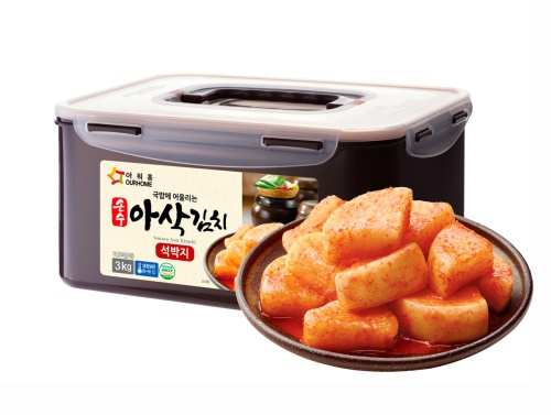 이미지 확대보기‘손수 아삭김치 석박지’는 강남 유명 설렁탕 맛집의 아삭하고 시원한 석박지의 맛을 재현했다. 곱게 간 고춧가루와 잘게 갈은 야채양념을 사용, 양념건더기가 없어 깔끔한 맛이 특징이다. 두께는 시중 판매되고 있는 것보다 더 두꺼워 씹을 때 아삭한 식감을 느낄 수 있다.