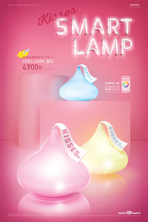 배스킨라빈스 관계자는 "‘키세스 스마트 램프’는 귀여운 모양과 높은 실용성으로 연인을 위한 특별한 선물로도 손색없는 아이템”이라며 “이번 밸런타인데이는 배스킨라빈스의 달콤한 아이스크림 및 스마트한 키세스 램프와 알차고 분위기 있게 즐기시길 바란다”고 말했다.