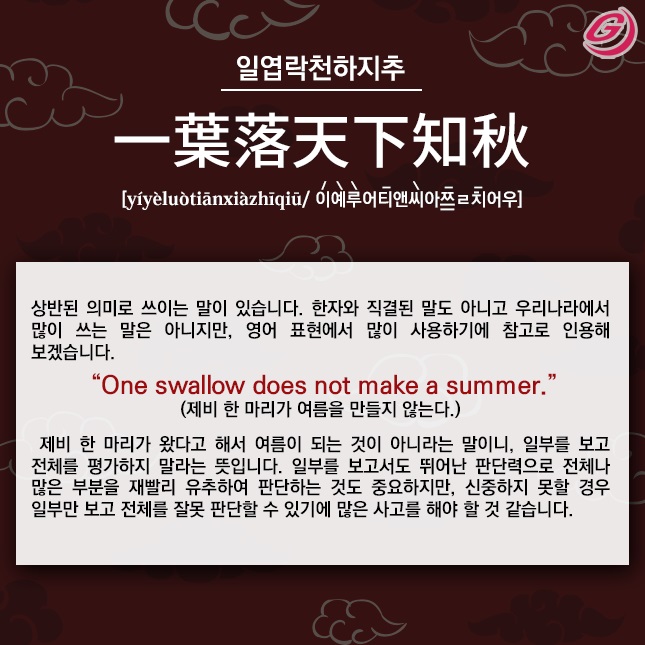 [서재환의 말로 쓰는 톡톡 중국어(16)] 하나를 보면 열을 안다(一葉落天下知秋)