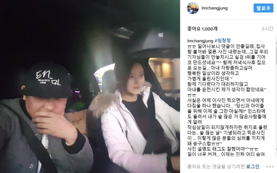 이미지 확대보기임창정은 7일 자신의 인스타그램 계정을 통해 장문의 글을 올려 대리운전 과정을 설명했다. 그는 "일어나보니 댓글이 안 좋길래..집사람 볼까봐 얼른 사진 내렸는데...그걸 우리 기자님들이 안 놓치시고 실검 1위를 기어코 만들었다"고 말문을 열었다.