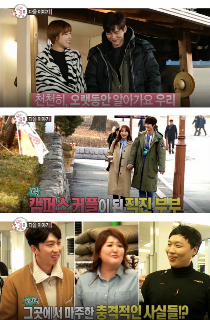이미지 확대보기MBC 토요일 예능 ‘우리결혼했어요’ 공식 홈페이지 방송안내에 따르면 이날 방송에서는 이국주의 일터를 방문한 슬리피, 캠퍼스 커플이 된 공명-정혜성 그리고 본격적인 결혼생활을 시작한최민용-장도연 커플의 이야기를 전한다.