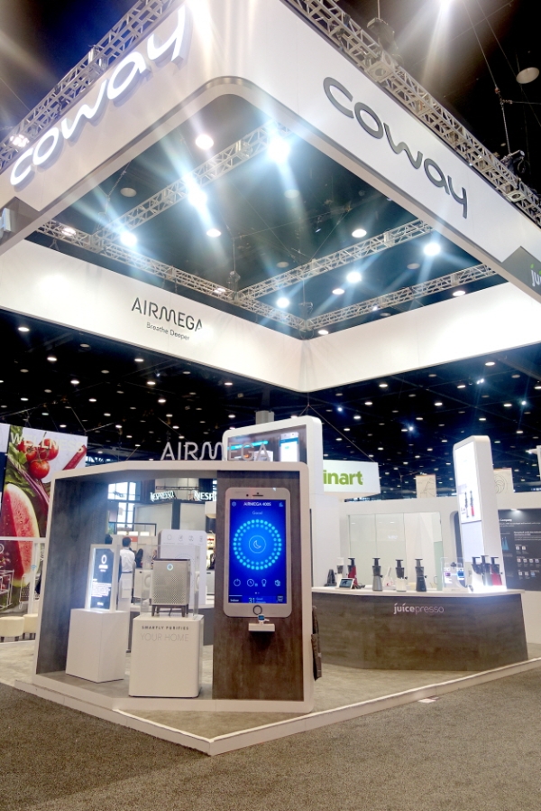 코웨이는 18일부터 21일까지 미국 시카고 맥코믹 플레이스에서 개최되는 ‘2017 시카고 국제 가정용품 박람회’에 9년 연속 참가해 아마존 알렉사를 연동한 공기청정기 등을 선보이며 북미 프리미엄 공기청정기 시장 공략에 나섰다. 이번 전시회에서는 공기청정기 10종과 주서기 8종의 모델을 선보였다.