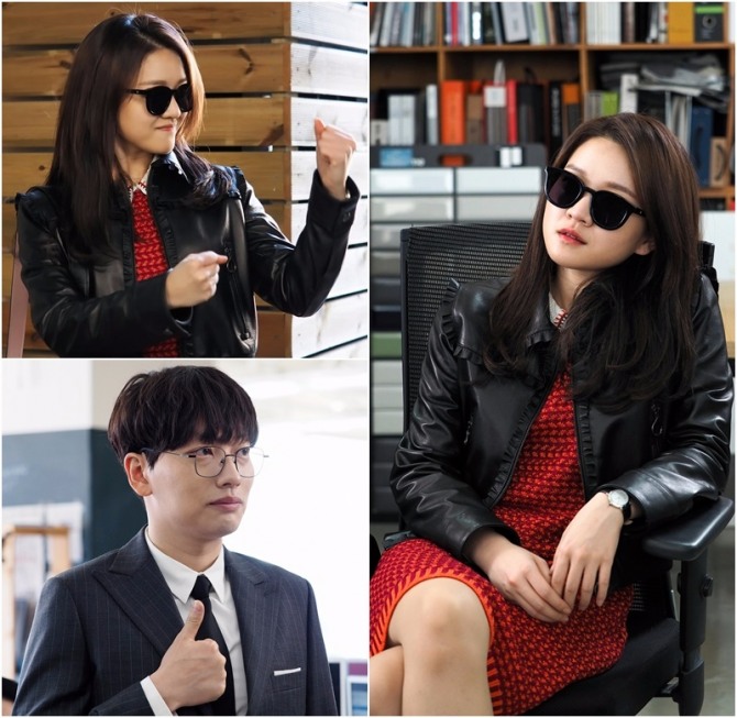 이미지 확대보기MBC 수목드라마 '자체발광 오피스' 제작진은 21일 검정 가죽자켓을 입고 선글래스를 착용하고 있는 고아성(은호원 역)의 '센캐 코스프레' 스틸 컷을 공개했다.
