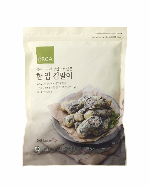 이미지 확대보기올가홀푸드가 ‘올가 한 입 김말이’를 내놨다. 이번 신제품은 고구마 전분으로 만든 당면에 당근과 부추를 넣어 한입 크기로 말아 튀겨낸 간편 가정식이다. 오븐 전용 용기에 담아 예열된 오븐에서 10~12분간 조리하거나 프라이팬으로 3~4분간 튀겨내면 된다.