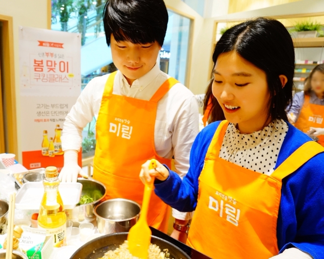 롯데주류가 지난 30일 롯데월드몰 'ABC 쿠킹스튜디오'에서 신혼부부와 예비부부를 대상으로 '미림 쿠킹클래스'를 개최했다.