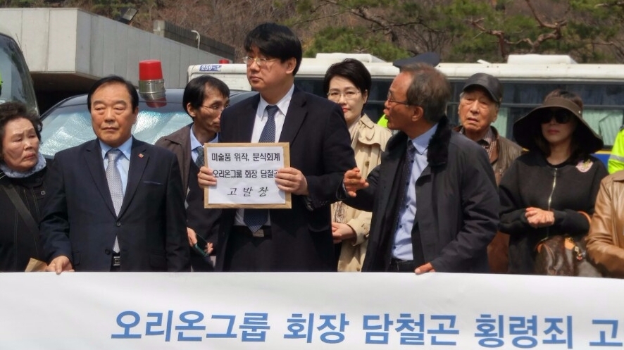 이날 고발장 접수 전 열린 기자회견에서 약탈경제반대행동 운영위원 이민석 변호사는 “법원에서 재판을 받든, 집행유예 기간이든 전혀 신경 쓰지 않고 회사 돈과 미술품을 횡령하는게 담철곤의 본질이다. 이 본질을 알리기 위해 고발장을 접수한다”고 밝혔다.