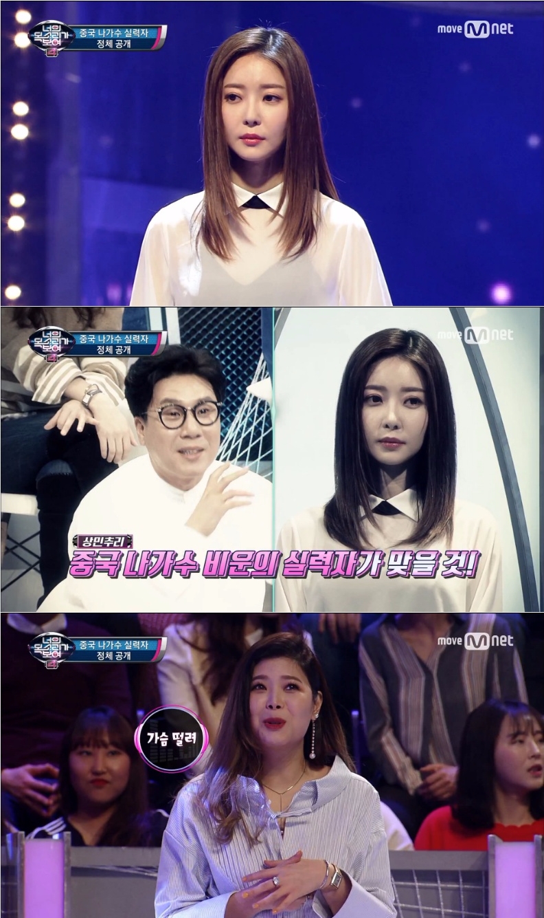 하지만 '중국 나가수' 한서아는 실력자였다. 진실의 무대에 오른 '중국 나가수 비운의 실력자'는 린의 'With You'를 선곡해 모두를 울렸다. 첫 소절을 들은 패널과 관객들은 "실력자구나"라고 환호했다. 나즈막하게 노래를 이어가는 한소아를 본 린은 완전 감동했다.