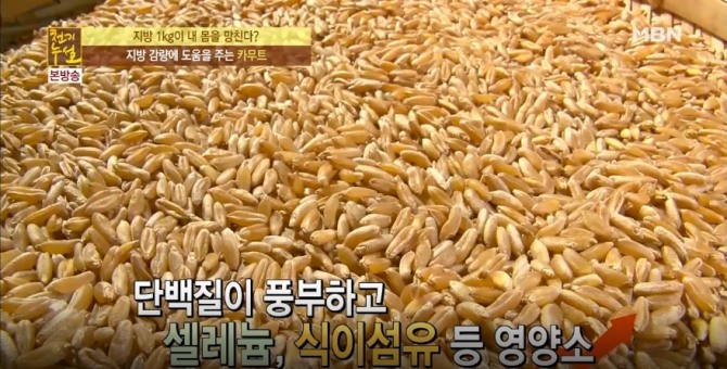 정상열 식품영양학 박사 정상열은 카무트가 지방 감량에 도움이 되는 이유에 대해 “몸속에 쌓여 있는 지방을 제거하기 위해서는 몸 속의 청소부라 불리는 식이섬유 섭취가 중요한데 카무트는 현미의 3배, 백미의 8배 이상의 식이섬유를 함유하고 있습니다.”라고 말했다.