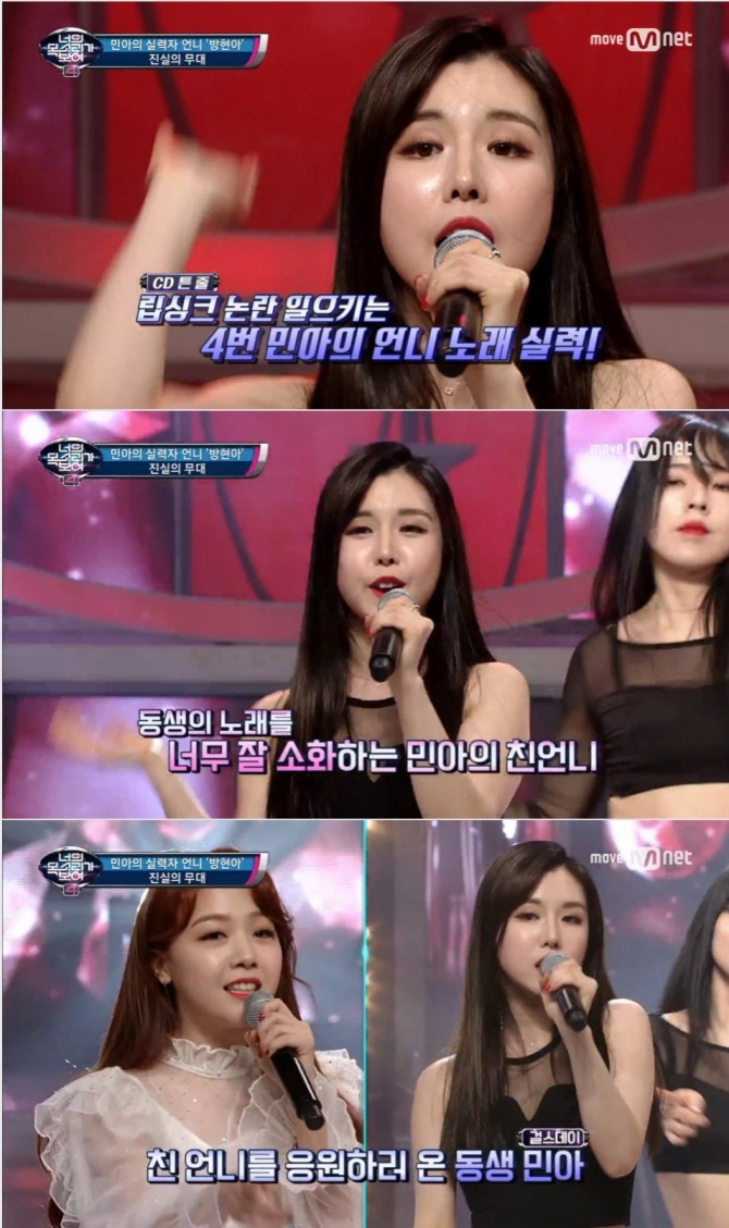 이미지 확대보기6일 밤 방송된 Mnet '너의 목소리가 보여 시즌4'(이하 '너목보4')에서는 로이킴이 게스트로 출연한 가운데 걸스데이 멤버 민아의 친언니 방현아가 등장했다.