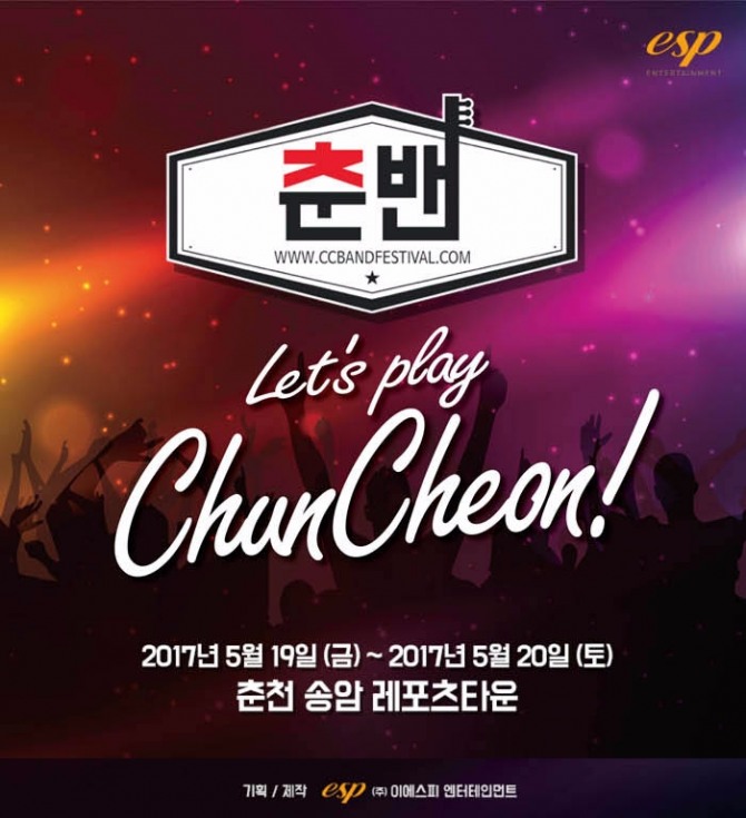 이미지 확대보기2017 춘천 밴드 페스티벌은 오는 5월 19일부터 20일까지 이틀간 천천 송암 레포츠타운 주경기장에서 진행된다. 티켓 가격은 19일권 3만3000원, 20일 6만6000원, 양일권 9만9000원이다.