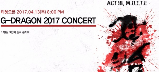 지드래곤의 세 번째 솔로 콘서트인 'G-DRAGON 2017 CONCERY: 모태(母胎)'는 오는 6월 10일 토요일 서울 상암동 월드컵 경기장에서 오후 7시 30분에 열린다.
