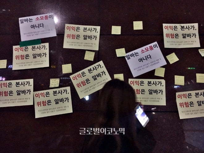 [글로벌이코노믹 한지명 기자] ‘경산CU편의점알바노동자살해사건 시민대책위원회’는 13일 오후 7시 서울 강남구 BGF리테일 본사 앞에서 추모 촛불 문화제 ‘CU 홍석조 회장, 박재구 대표, 이걸 사과라고 하셨습니까?’를 개최하고 BGF리테일의 공식 사과와, 유가족에게 합당한 보상, 편의점 알바 노동자들을 위한 대책 마련과 야간영업유도정책 중단 등을 촉구했다.