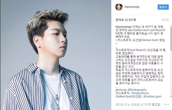 이미지 확대보기14일 스윙스는 자신의 인스타그램을 통해 “이제는 내 새끼가 된 대형견 최하민 aka Osshun Gum Just Music의 9번째 세 멤버로 들어왔습니다. 많이 예뻐해주세요”라고 밝혔다.