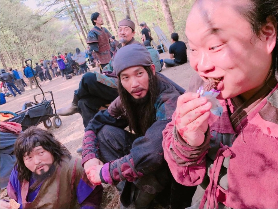 이미지 확대보기윤균상은 23일 자신의 인스타그램을 통해 '역적: 백성을 훔친 도적'(이하 '역적')에 함께 출연하는 박준규(소부리 역), 이준혁(용개 역), 이호철(끗쇠 역), 김도윤(세걸 역) 등과 함께 비하인드 컷을 공개했다. 그는 "#역적 도시락 두개반 먹고 아이스크림 두개 먹고 쪼꼬과자 먹는 #끗쇠 흉을 사랑스럽게 보는 #소부리 형님 #용개 성 #세걸 성"라는 문구와 해시태그(#)를 달아 웃음을 자아냈다.