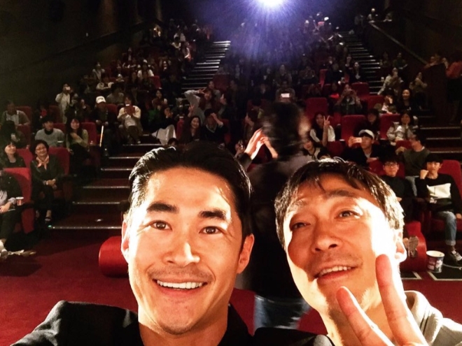 이미지 확대보기26일 구리 롯데 아울렛 롯데시네마에서 열린 영화 '보안관' 일반시사회에서 배정남은 이성민과 함께 게릴라 무대 인사를 한 뒤 투샷을 담아 자신의 SNS를 통해 공개했다.