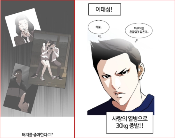 이미지 확대보기금요웹툰 '외모지상주의 128화 첫사랑2'에서는 이태성이 양다리 주희가 돼지를 좋아한다는 발언에 어이없어 했다. /사진=네이버 웹툰 외모지상주의 캡처[글로벌이코노믹 이해성 기자] 금요웹툰 '외모지상주의 128화 첫사랑2'가 4만25명이 읽으며 네티즌들의 인기를 끌고 있다.