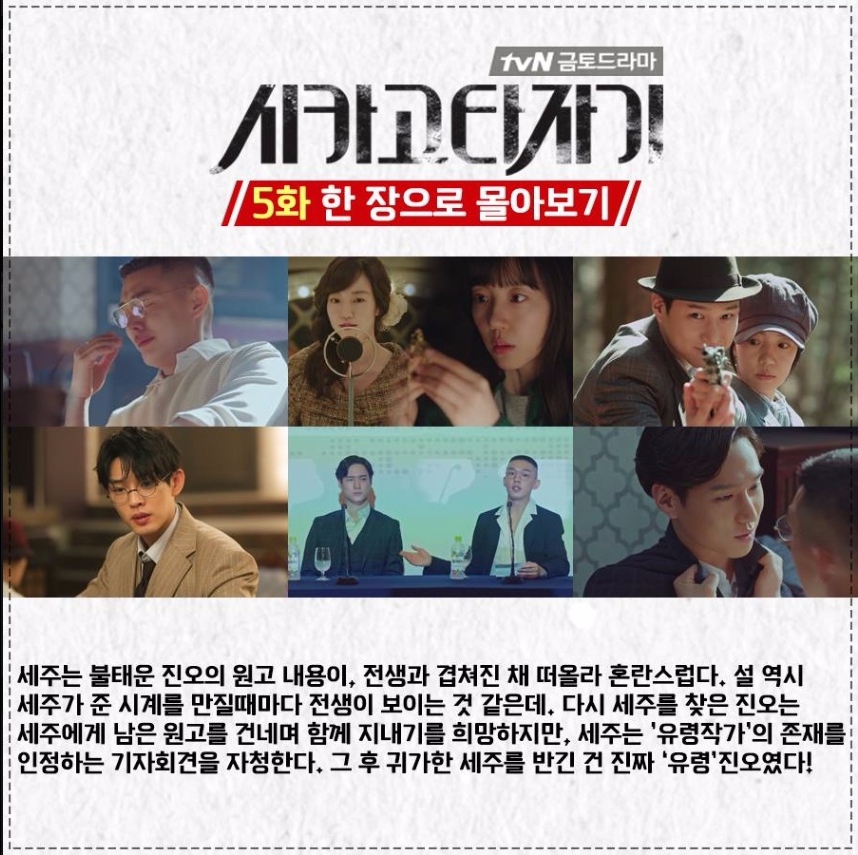 한편, '시카고 타자기'는 29일 저녁 7시 50분부터 7회와 8회를 연속 방송한다. 지난 22일 방송된 6회에서는 유령작가 유진오의 정체가 진짜 유령으로 한세주와 일부 인물들에게만 보이는 충격적인 장면이 그려졌다.