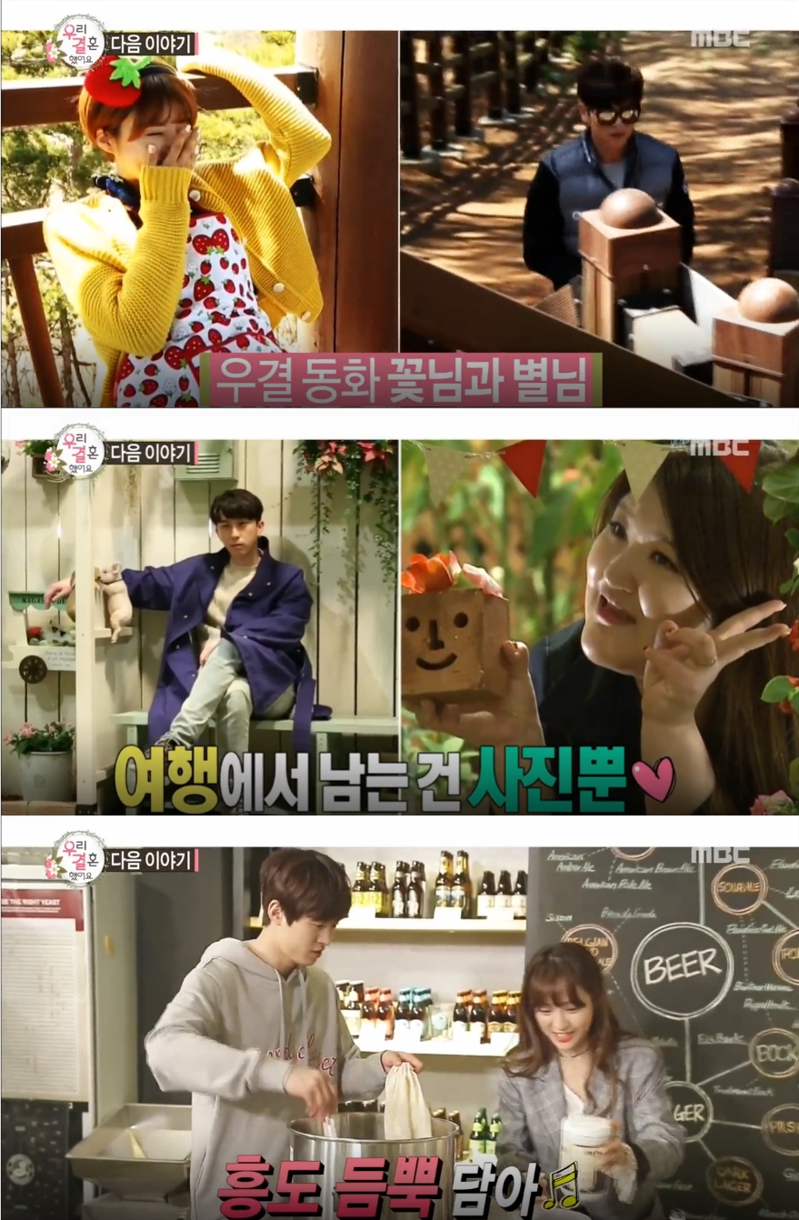 이미지 확대보기MBC 토요일 예능 ‘우리결혼했어요’ 공식 홈페이지 방송안내에 따르면 이날 방송에서는 국화도에서 달콤한 신혼을 즐기고 있는 최민용-장도연, 일본으로 신혼여행을 떠난 슬리피-이국주 커플 그리고 선물용 수제 맥주만들기 체험에 나선공명-정혜성 커플의 이야기가 공개된다.