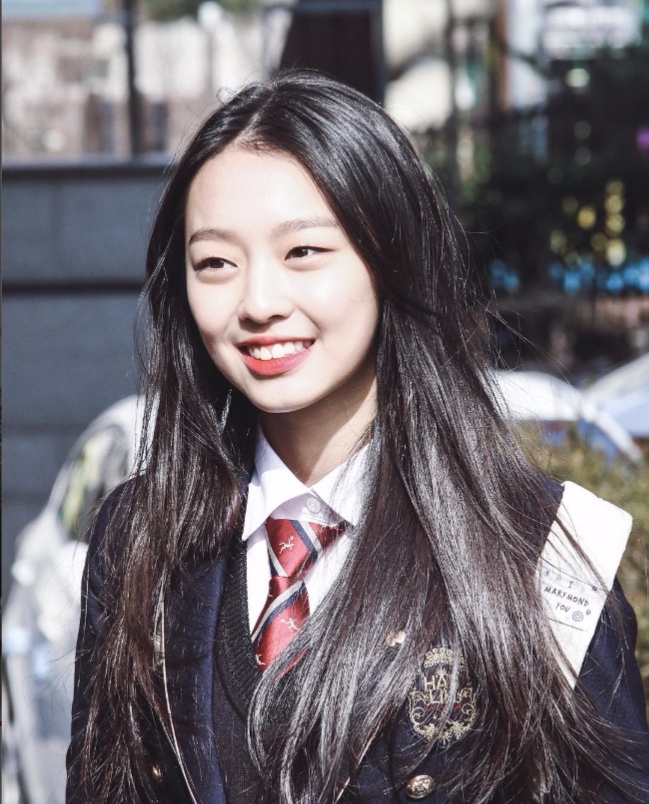 공개된 사진 속의 이수민은 한림예고 교복을 입고 긴 생머리에 벚꽃 핀을 머리에 꽃은 청순한 모습으로 카메라를 향해 미소를 짓고 있다.