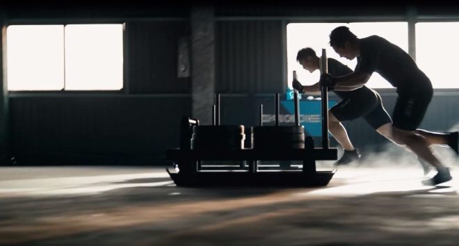 두 선수는 각종 기구를 활용해 고강도의 훈련을 마친 후 파워에이드를 마시며 땀을 씻어 내는 모습을 연출했다.