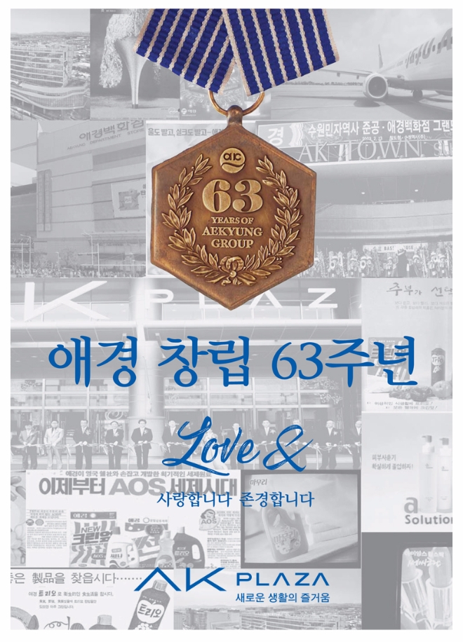 AK플라자는 오는 6월9일 애경그룹 창립 63주년을 맞아 구로본점, 수원AK타운점, 분당점, 평택점, 원주점 등 전 점에서 5월 26일부터 6월11일까지 17일간 ‘러브&’을 테마로 대대적인 이벤트와 할인 행사를 진행한다. 올해는 애경 창립 63주년을 기념하는 의미로 그룹사와의 협업을 통한 경품행사와 이벤트를 준비했다. AK플라자에서 준비한 애경 63주년 기념 순금 63돈(1000만원 상당)의 메달과 제주항공 국제선 항공권, 중부컨트리클럽 이용권, 노보텔 앰배서더 수원 이용권, 애경산업 스페셜 생활용품 세트 등을 경품으로 내걸었다.
