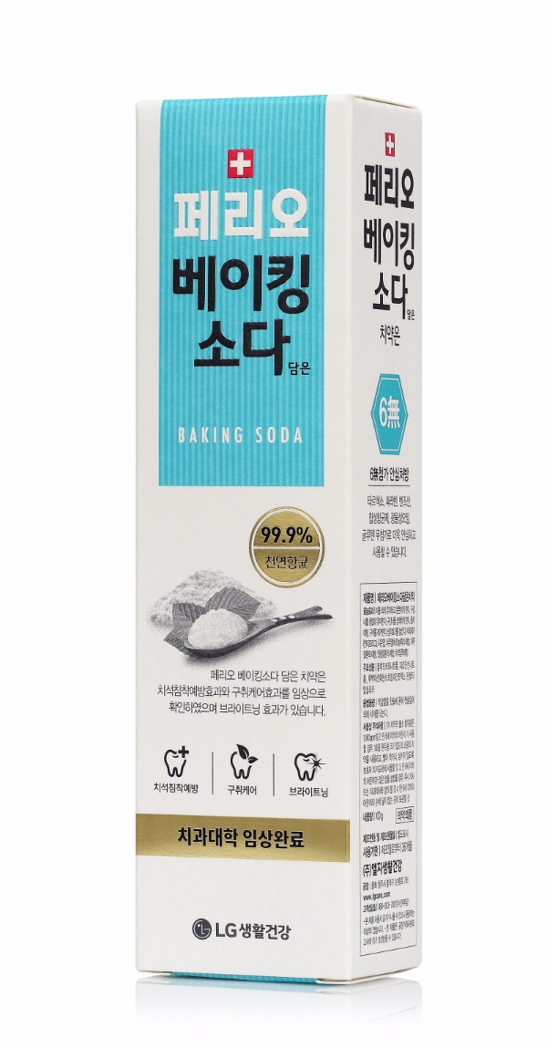 LG생활건강은 베이킹소다를 담아 안심하고 치아를 케어하는 ‘페리오 베이킹소다 담은 치약’을 출시했다. 내추럴 성분으로 각광받는 베이킹소다를 함유하고 벤조산, 파라벤 등 자극이 우려되는6가지 성분을 첨가하지 않아 안심하고 사용할 수 있는 것이 특징이다. 치석, 구취 등 다양한 구강문제에 대한 개선효과를 치과대학 임상으로 증명 받은 기능성 안심 치약이다.