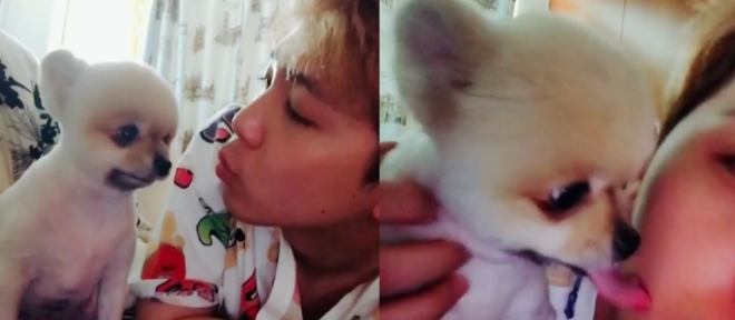 동영상 속에서 이홍기는 반려견 '프리'에게 뽀뽀를 하며 애정을 과시했다.
