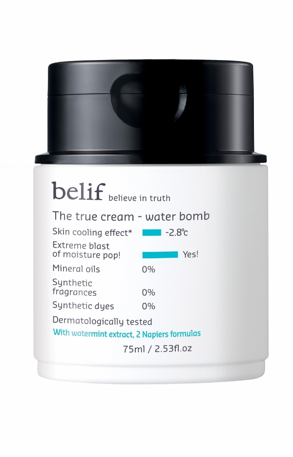 LG생활건강이 빌리프에서 피부를 시원하게 진정시키는 수분폭탄, 보습폭탄에 이어 쿨링폭탄 크림 ‘더 트루 크림-워터 밤’을 출시했다. 워터 민트 추출물을 함유한 젤 타입 수분 크림으로 피부에 시원한 청량감을 선사하고 진정시켜준다. 피부에 바르는 순간 물방울이 터지는 듯한 쫀쫀하면서도 투명한 제형이 넘치는 수분을 피부 깊이 촉촉하게 가꿔준다.