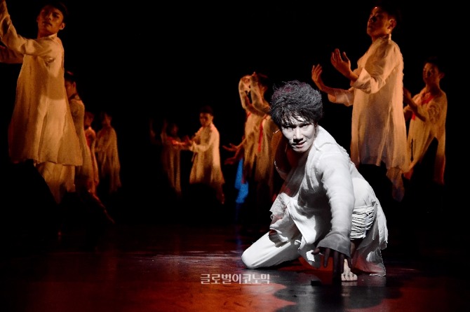 이미지 확대보기대가없이 정의로운 일을 한 뒤, 교훈만 남기고 구름처럼 떠나간다는 『홍길동』은 프롤로그(망각, 현재의 우리 사회), 에필로그(율도로 가는 길, 미래)를 포함하여 3개의 장으로 구성된다. 안무가는 아르코예술극장 대극장 무대의 너른 공간을 잘 활용하여 공간감을 최대한 살리고, 작곡가 박기백의 음악, 정진용의 라이브 밴드 연주와 사운드를 ‘프롤로그, 작품의 중간, 에필로그’에 사용, 춤과 조화를 꾀하며 현장감을 추구한다.
