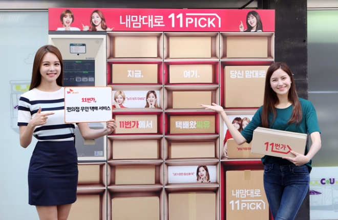‘11Pick 락커 서비스’는 편의점 직원 대신 편의점 외부에 설치된 전자 락커에서 11번가에서 주문한 물품을 수령하는 서비스로, 배송 완료 후 고객이 휴대전화 문자메시지로 받은 인증번호를 전자 락커에 입력하면 택배물품을 찾을 수 있다.