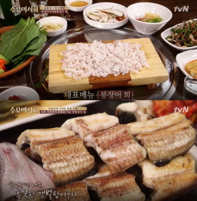[수요미식회 장어 맛집 리스트 총정리] 강화도 갯벌장어-인천시 강화군 선원면 더리미길(강화도 장어구이 맛집) '선창집', 인천 샤브샤브 갯장어(하모)-인천시 남구 경인로(석바위시장역 장어구이 맛집) '막줄래횟집', 뼈 없는 붕장어 & 붕장어회-서울시 강남구 언주로(압구정로데오역 장어맛집) '왕자장어' 위치&가격? /사진=tvN '수요미식회' 126회 '장어' 맛집 편(게스트-가수 거미, 배우 신다은, 아나운서 한석준)
