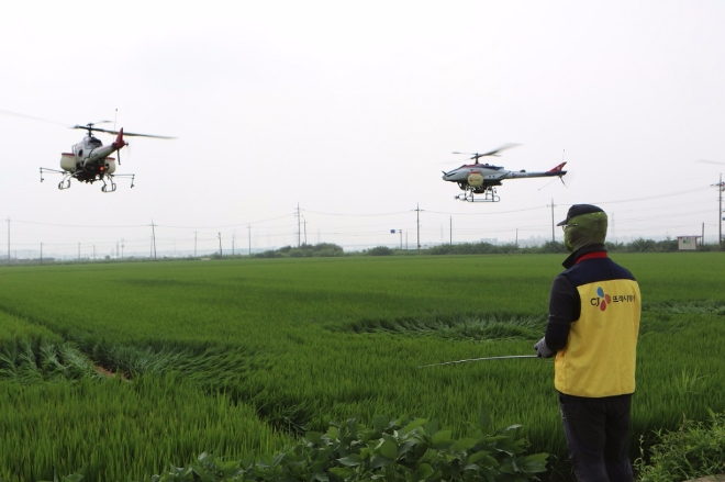 이미지 확대보기CJ프레시웨이는 12일까지 전북 익산시, 황등농협과 전북 익산시 황등면 일대 쌀 계약재배 250 농가를 대상으로 1차 병해충 항공방제를 실시한다.