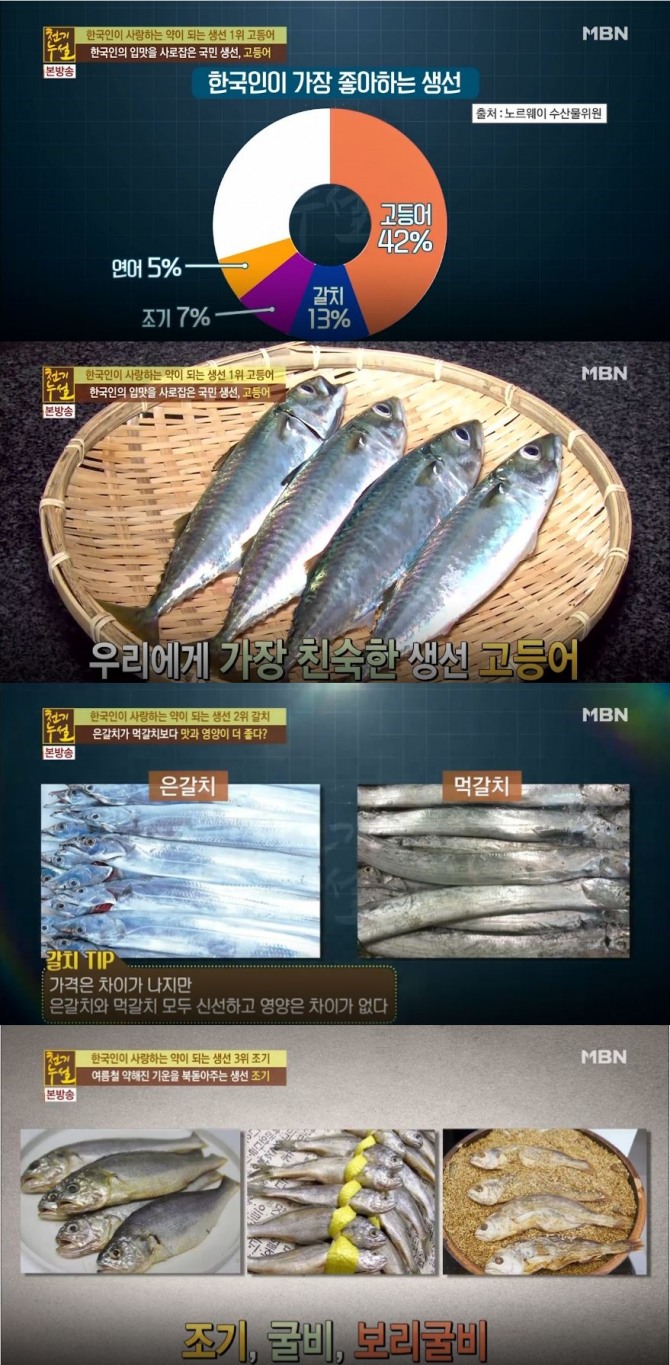 ‘천기누설’에서 공개한 여름철 건강을 되찾아줄 바다 보양식! 국민 생선 베스트 3는 바로 고등어, 갈치, 조기다.