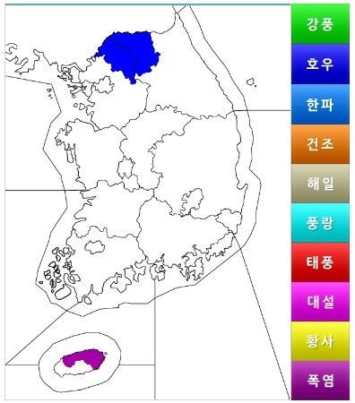 반면 제주도 동부와 북부에는 폭염주의보가 내려졌다.