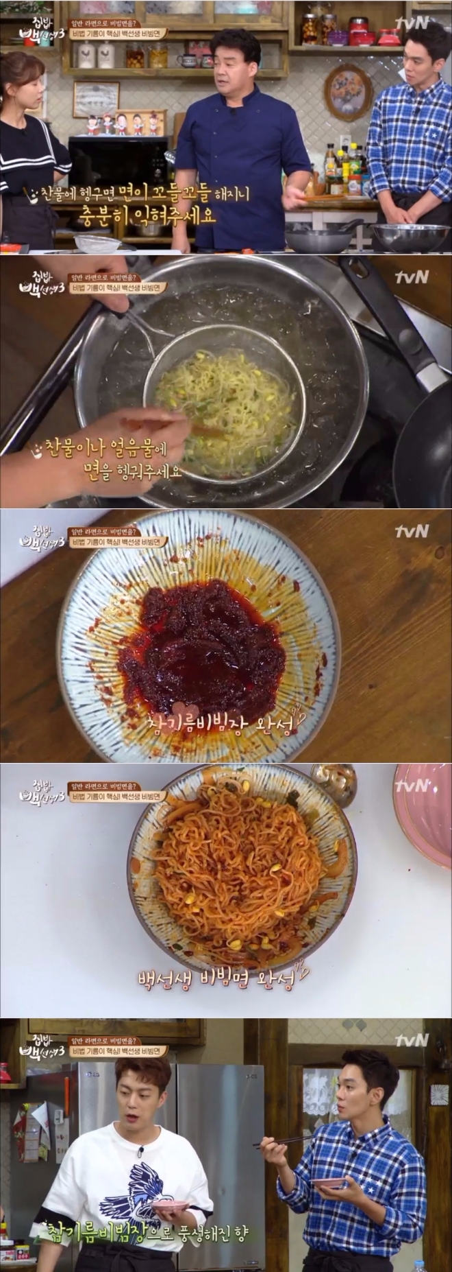 이미지 확대보기15일 밤 방송된 tvN '집밥 백선생 시즌3'(이하 '집밥 백선생3')27회에서는 백종원이 남상미, 이규한, 양세형, 윤두준 4명의 제자들에게 라면을 이용한 비빔면과 어묵비빔면 등 레시피를 공개했다.