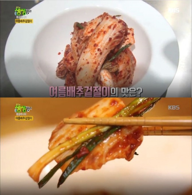 이미지 확대보기KBS 2TV ‘생생정보-황금레시피’에서는 아침, 점심, 저녁 언제 먹어도 맛있는 추천 여름김치! 건강반찬 ‘배추 겉절이’ & ‘오이김치’ 황금레시피를 소개했다.