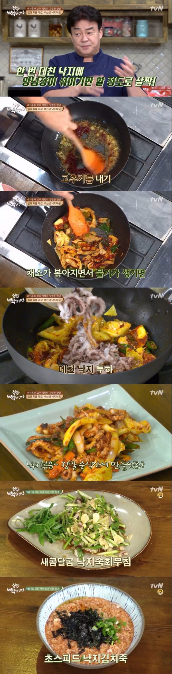 이미지 확대보기5일 밤 방송된 tvN '집밥 백선생시즌3'(이하 '집밥백선생3') 30회에서는 백종원이 냉동낙지를 주제로 탱탱한 식감을 살린 낙지 요리를 선보였다.